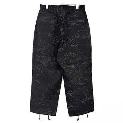 VAINL ARCHIVE(ヴァイナルアーカイブ)のMIL-TROUSER-TC(VAH23F010)です。タイガーカモをプリントしたワイドパンツです。ウォッシュ加工によって独特の風合いとアタリが生まれています。洗濯機での洗濯も可能なため、頻繁に洗うことでの経年変化も楽しんで頂けます。
