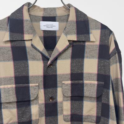 UNUSED(アンユーズド)のLong sleeve check shirt(US2463)です。ブロックチェック柄が特徴のオープンカラーシャツです。ブロックチェックに「赤」と「青」のラインを加えることで、柄に立体感を持たせ、遠目にも引き立つデザインに仕上げています。ネップ糸に微起毛加工を施すことで、あたたかみのあるヴィンテージライクな質感を実現し、柔らかく肌に馴染む着心地を提供します。