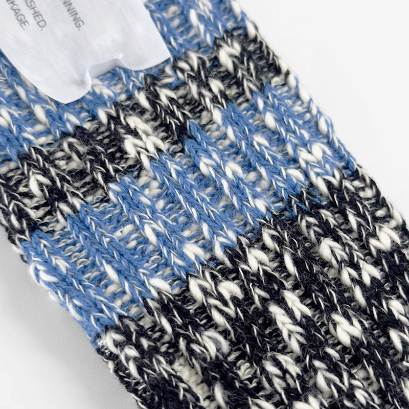 UNUSED(アンユーズド)のLine socks(UH0617)です。表情豊かな生地感が魅力のラインソックスです。異なる太さの糸を組み合わせることで、自然な凹凸感と温もりのある風合いを表現。ほどよい厚みがありながらも、ふんわりとした柔らかな履き心地に仕上げています。