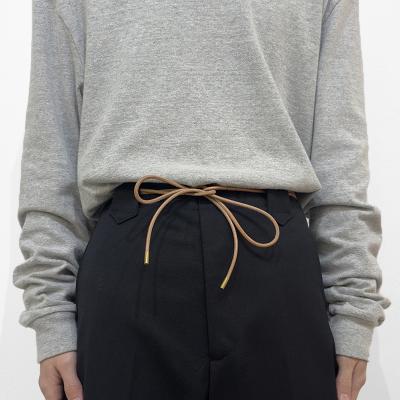 UNUSED(アンユーズド)のLeather belt(UH0620)です。スタイリングの幅が広がるレザーベルトです。腰元に垂らしてアクセントを加えたり、ベルトループに通してイージーパンツのように着用したりと、多彩なアレンジが可能です。さらに、首にかけてネックレスのように取り入れることもできます。素材には、しなやかで耐久性に優れたカウレザーを使用しています。