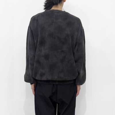 VAINL ARCHIVE(ヴァイナルアーカイブ)のWILL(VASK25S003)です。ブリーチ加工を施したメッシュニットです。製品染めを施した後、さまざまなブリーチ加工を加えることで独特の風合いを表現しています。素材には、軽量で速乾性に優れた綿糸を使用。通気性も良く、暖かい季節でも快適に着用できます。