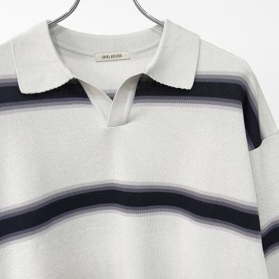 VAINL ARCHIVE(ヴァイナルアーカイブ)のJEFF(VASK25S006)です。オリジナルのボーダー柄を採用したスキッパーニットです。4色のグラデーションで表現した上品なオンブレボーダーが特徴。16ゲージのタック鹿の子編みを裏使いすることで、柔らかな表情と奥行きのあるグラデーションを演出しています。程よい肉感がありながらも通気性に優れ、暖かい季節でも快適に着用できます。