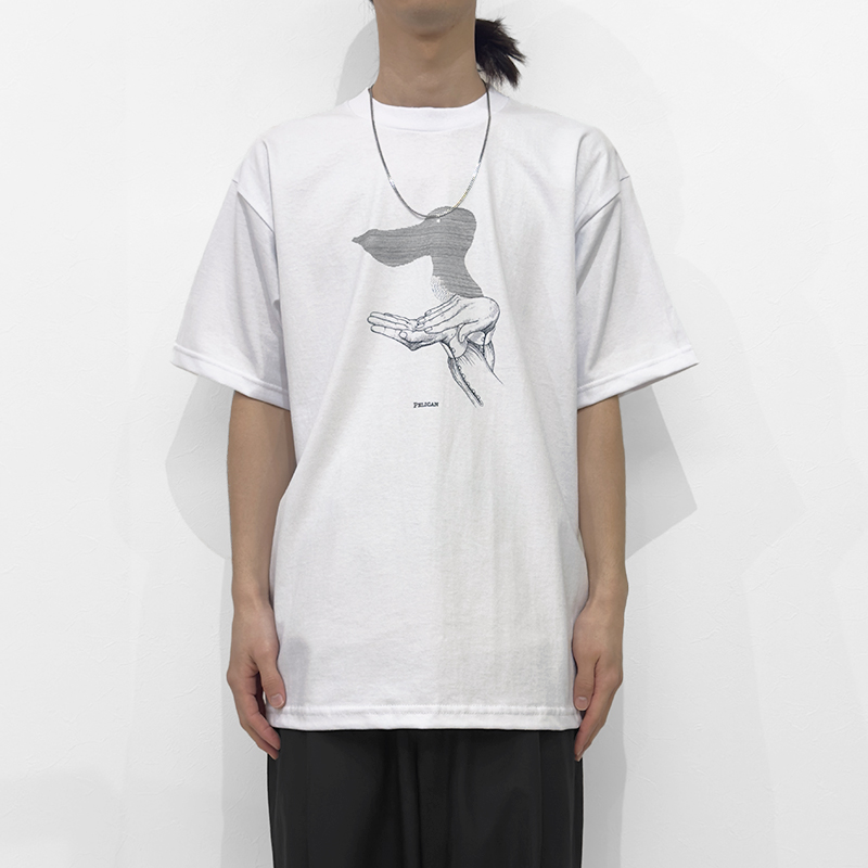 URU(ウル)のCREW NECK S/S TEE(25SUC06)です。影絵のプリントを施したTシャツです。繊細な点字で描かれた影絵デザインをシルクスクリーンプリントで丁寧に表現。素材には、目の詰まったタフな生地を使用しており、強度が高く、繰り返しの着用にも耐えるしっかりとした着心地に仕上がっています。