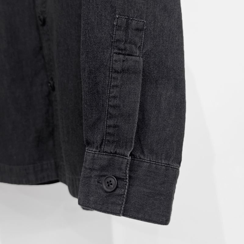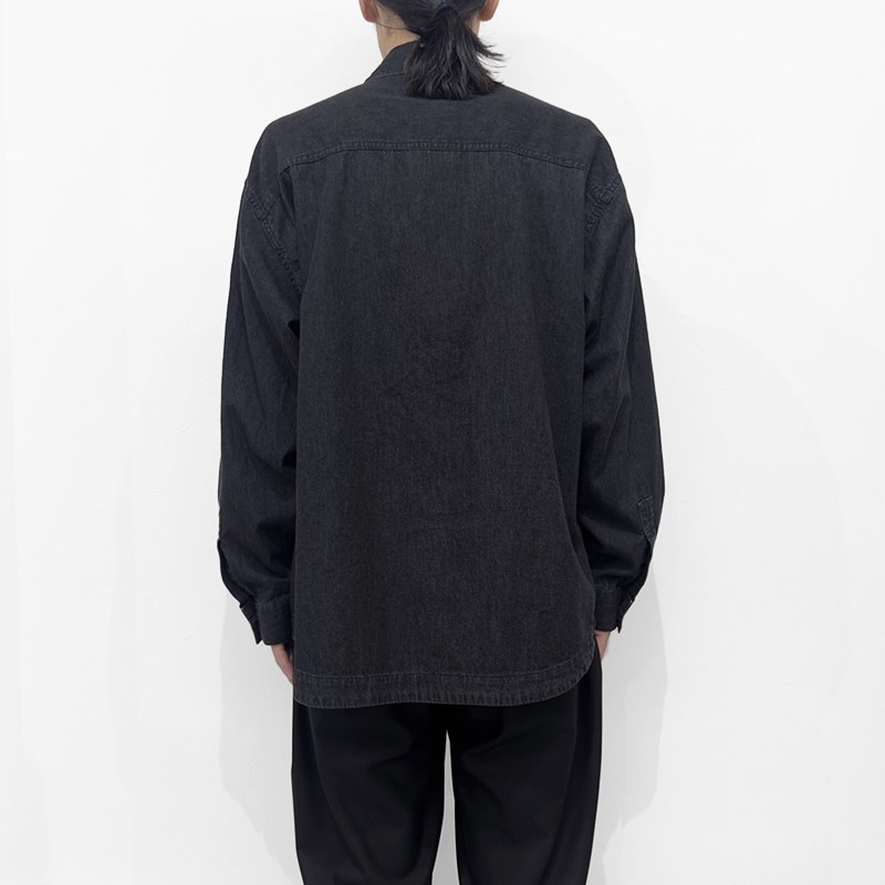 VAINL ARCHIVE(ヴァイナルアーカイブ)のND-SH(VAS25S003)です。上品な仕立てが魅力のデニムシャツです。水牛ボタンを採用するなど、ドレスシャツをベースにしながら、両胸のパッチポケットで程よくカジュアルダウンさせたデザインが特徴。生地には5.5ozのデニムを使用し、しなやかな着心地とともに、デニム特有の経年変化も楽しめる表情豊かな一着です。