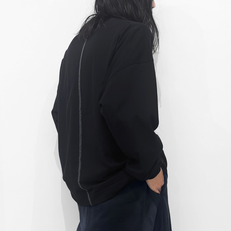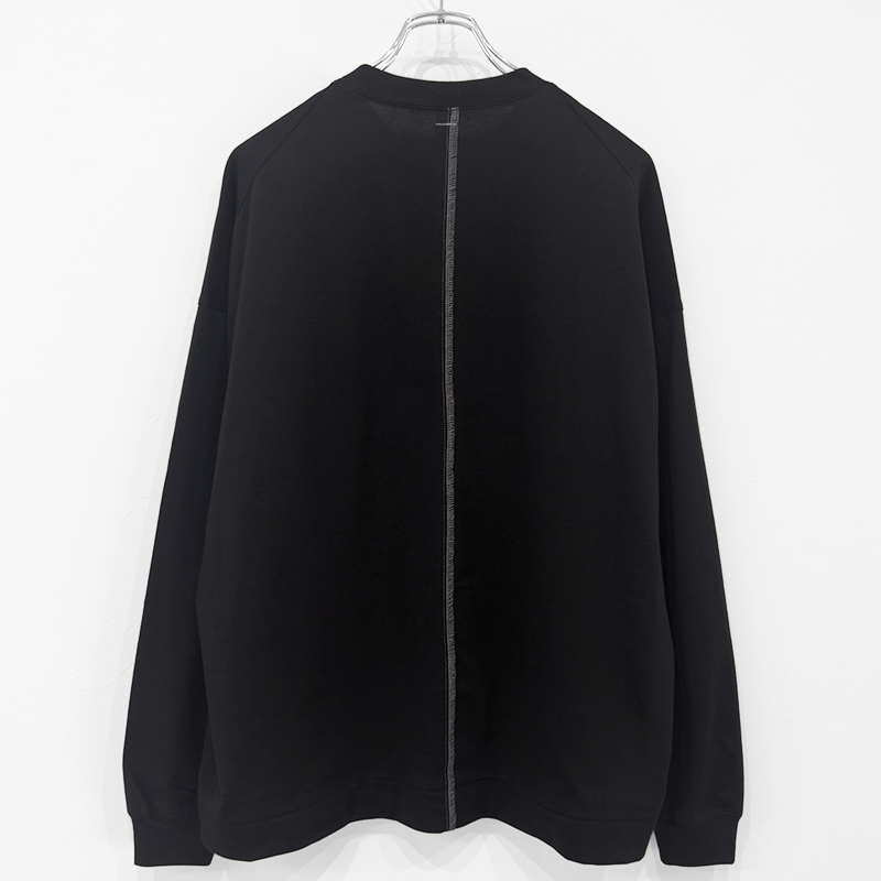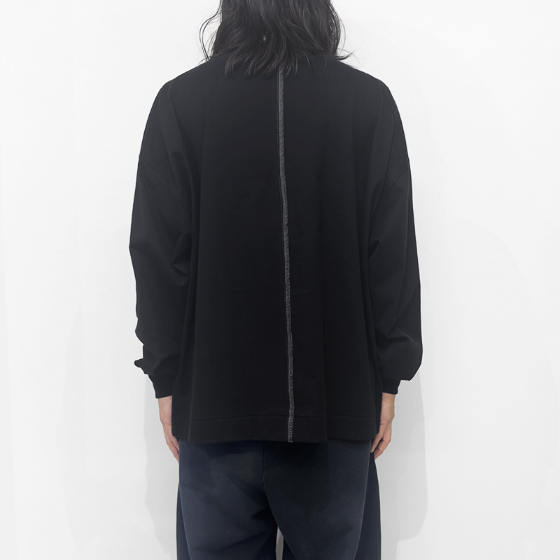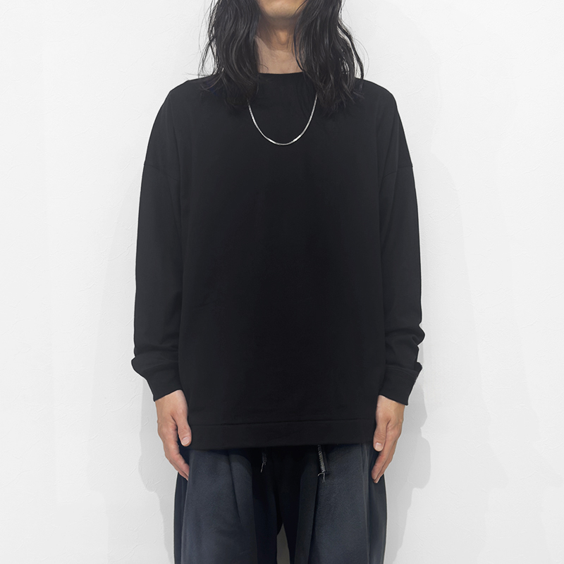 SHINYAKOZUKA(シンヤコヅカ)のL/S TEE(2502SK89)です。背中に施されたロックステッチが印象的な長袖Tシャツです。生地には、40番手のコットンソフト天竺を採用。ハイゲージで丁寧に編み立てることで、適度なハリとコシを持たせつつ、透け感を抑えた上品でしっかりとした風合いに仕上げています。