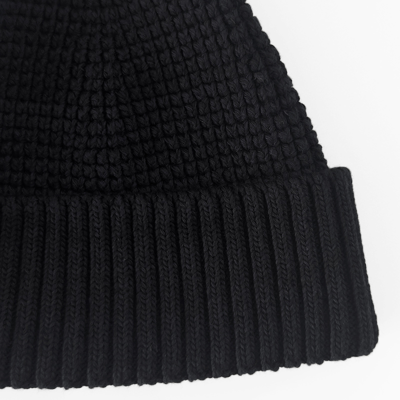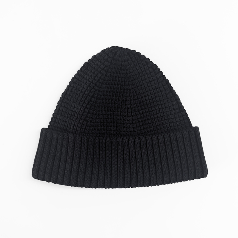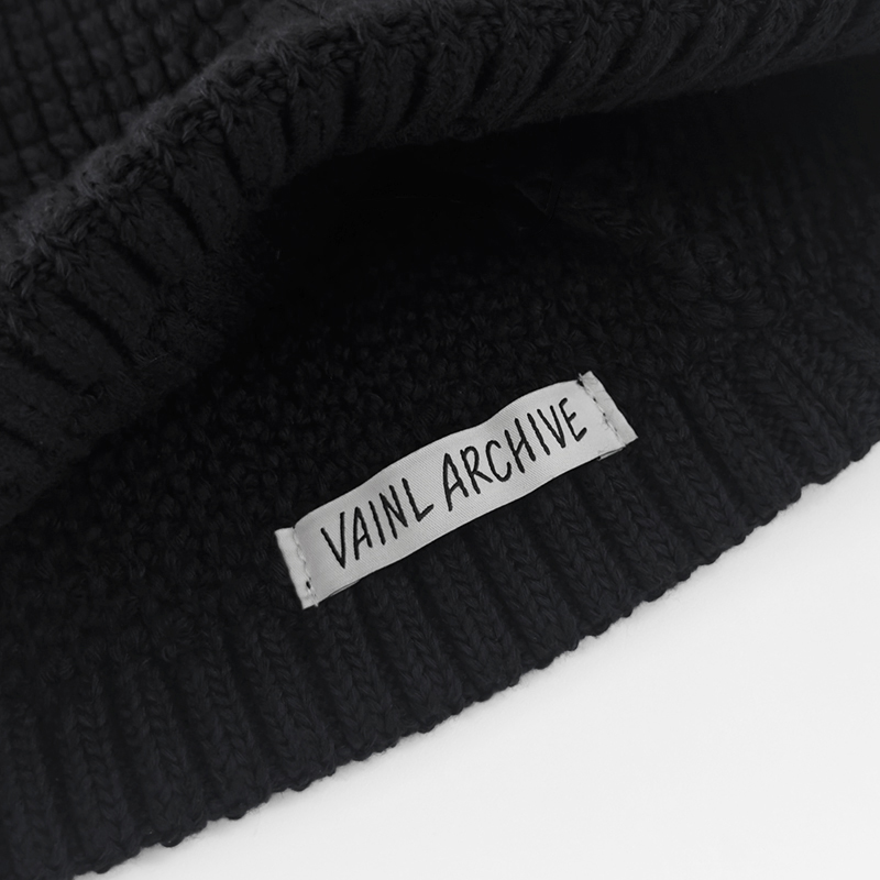 VAINL ARCHIVE(ヴァイナルアーカイブ)のCone-T(VASK25F006)です。編地の切り替えが特徴的なニットキャップです。ワッフル編みとリブ編みを切り替えることで表情に変化を持たせ、シンプルながらアクセントの効いたデザインに仕上げています。柔らかな素材感で被り心地も快適。さらに、ご自宅での手洗いにも対応しており、日常使いしやすいアイテムです。