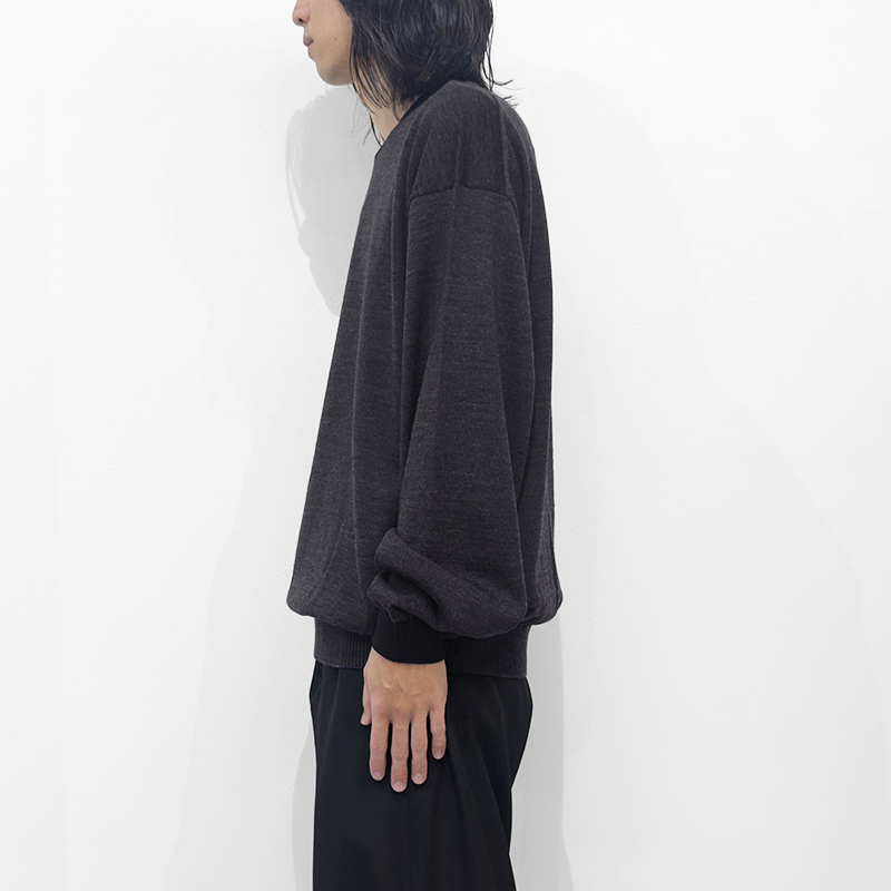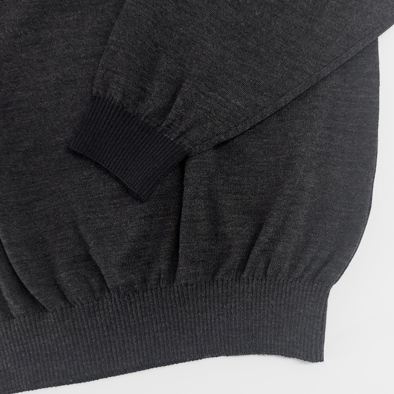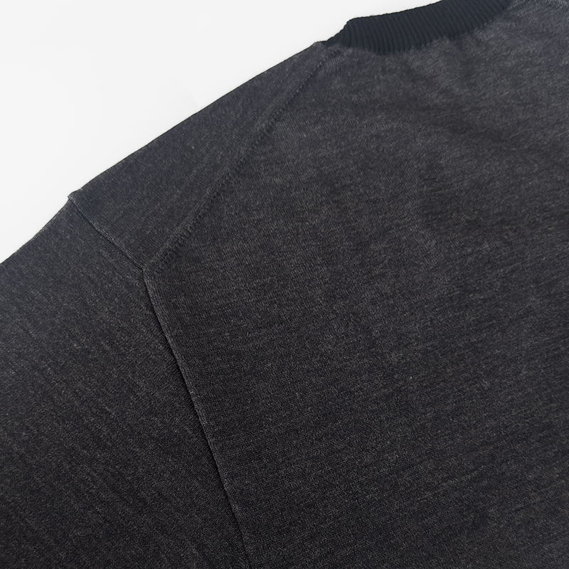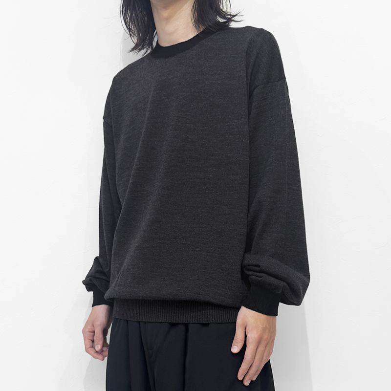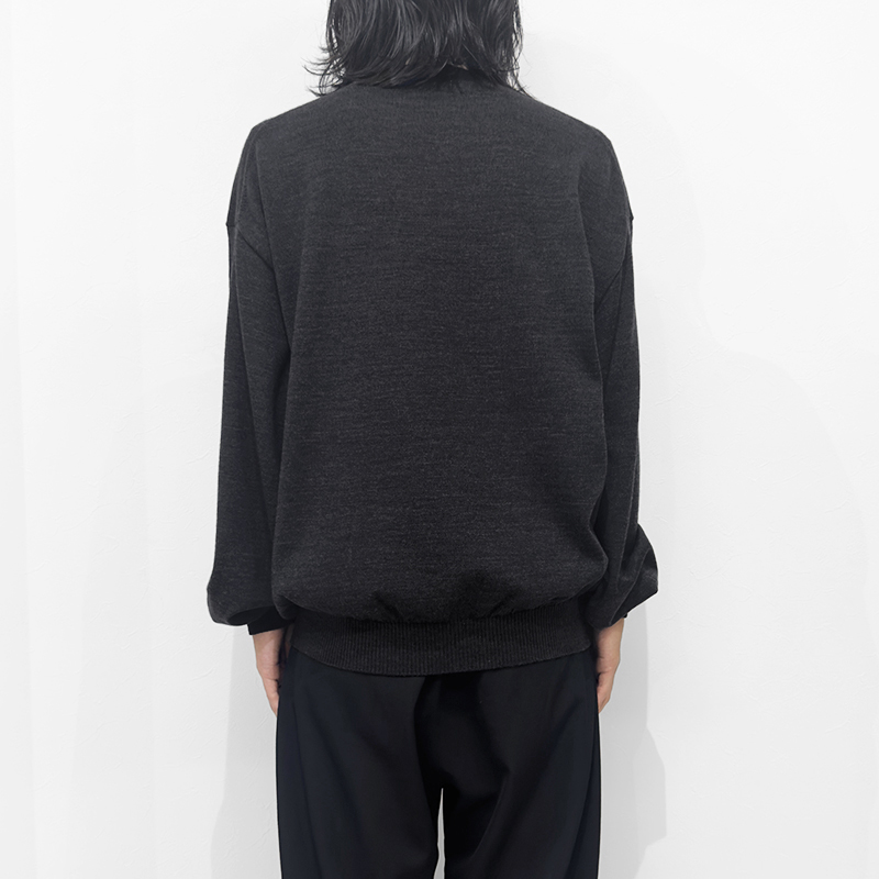 VAINL ARCHIVE(ヴァイナルアーカイブ)のDaniel(VASK25F002)です。ウールSuper120’sを使用したトリムニットです。Super 120’sとは、1本の繊維がおよそ17.5ミクロン前後という極めて細い原毛を指す国際基準で、しなやかで軽やかな風合いを持つ高級素材のひとつです。この極細原毛から編み上げた本作は、柔らかで滑らかな肌触りと上品な光沢を持ち、シンプルでありながらラグジュアリーな印象を与える仕上がりとなっています。