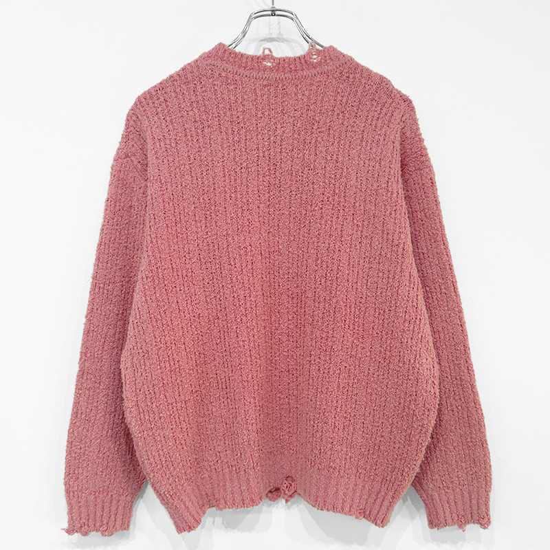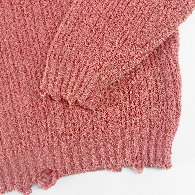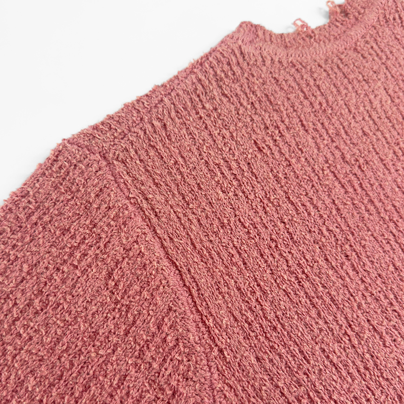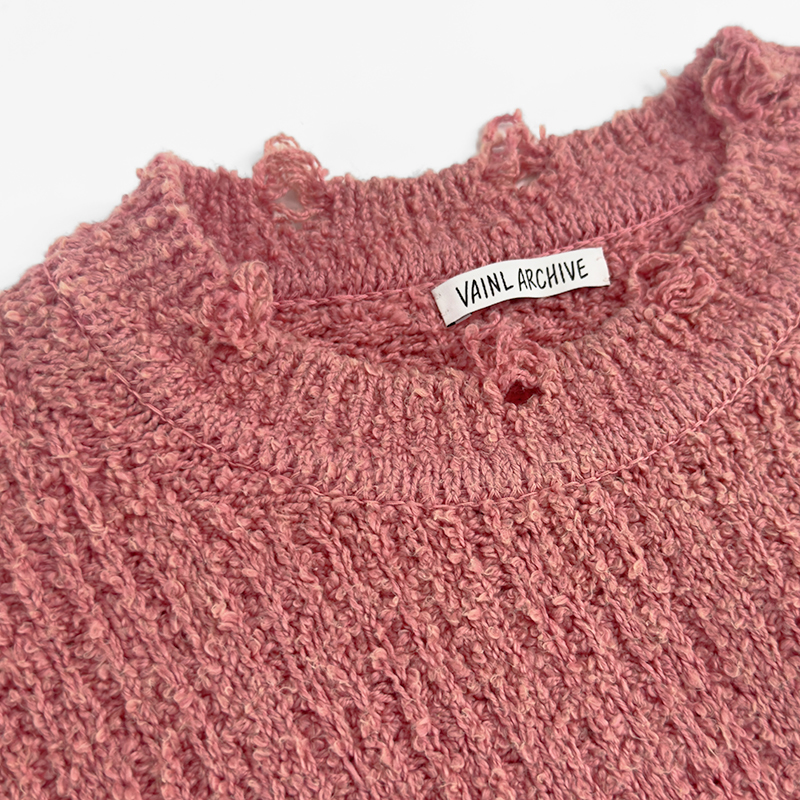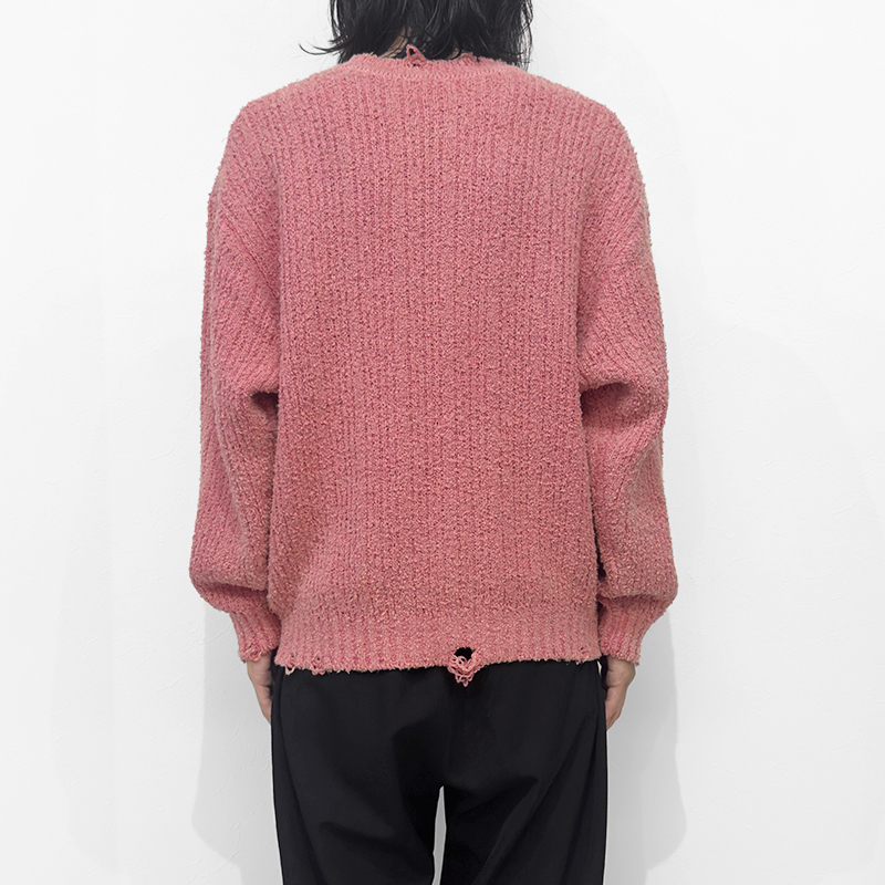 VAINL ARCHIVE(ヴァイナルアーカイブ)のJeff-D(VASK25F004)です。ヴィンテージ感漂うプルオーバーニットです。カール糸とモール糸を組み合わせて畦編みに仕立てることで、立体的で奥行きのある編地を実現。3色の染料を用いた製品染めにより、深みのある独特の色合いを表現しています。さらに、編み立ての段階で機械的にダメージを設計し、自然な経年変化を思わせる風合いに仕上げています。ご自宅での手洗いにも対応しており、日常的に取り入れやすい一着です。
