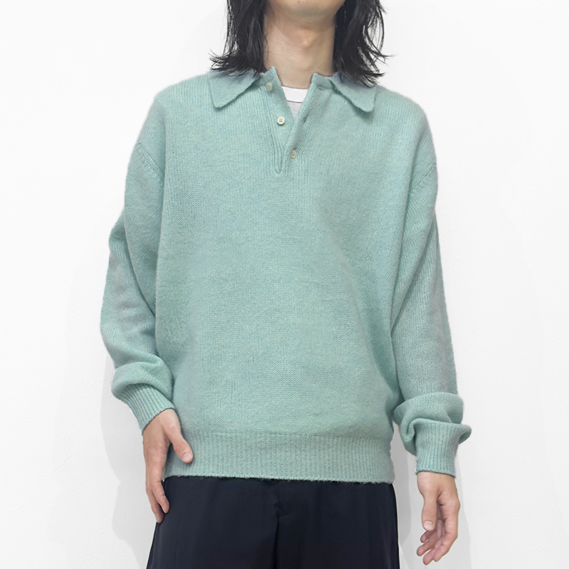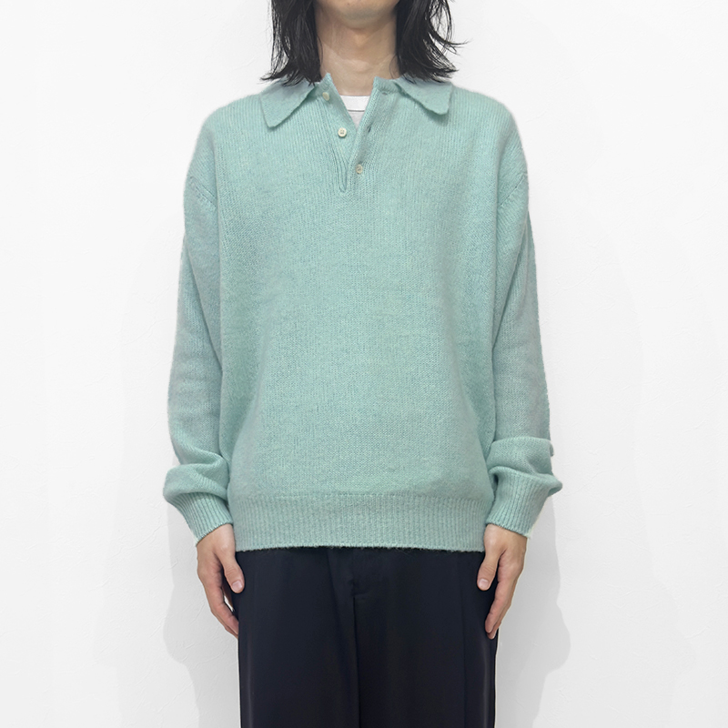 URU(ウル)のKNIT POLO(25FUK06)です。軽やかな着心地が魅力のニットポロです。空気を多く含んだ糸を使用することで、ソフトで軽やかな質感の中に、ほどよいボリューム感を持たせています。保温性にも優れ、チクつきを抑えた快適な肌触りに仕上がっています。