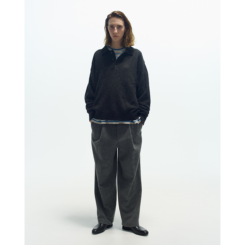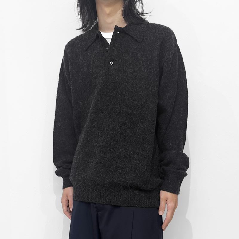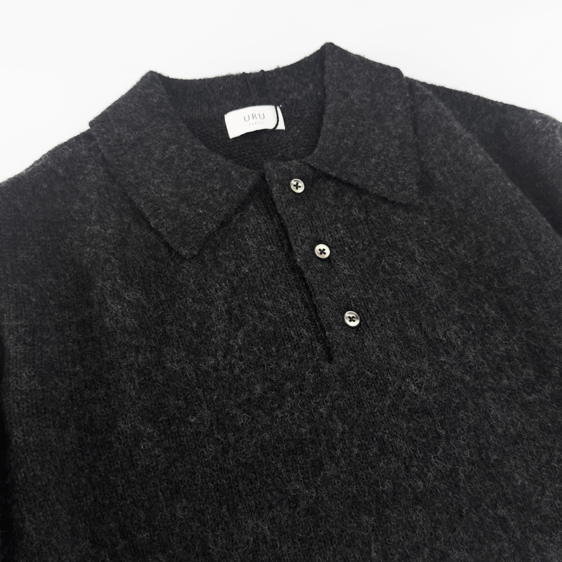 URU(ウル)のKNIT POLO(25FUK06)です。軽やかな着心地が魅力のニットポロです。空気を多く含んだ糸を使用することで、ソフトで軽やかな質感の中に、ほどよいボリューム感を持たせています。保温性にも優れ、チクつきを抑えた快適な肌触りに仕上がっています。