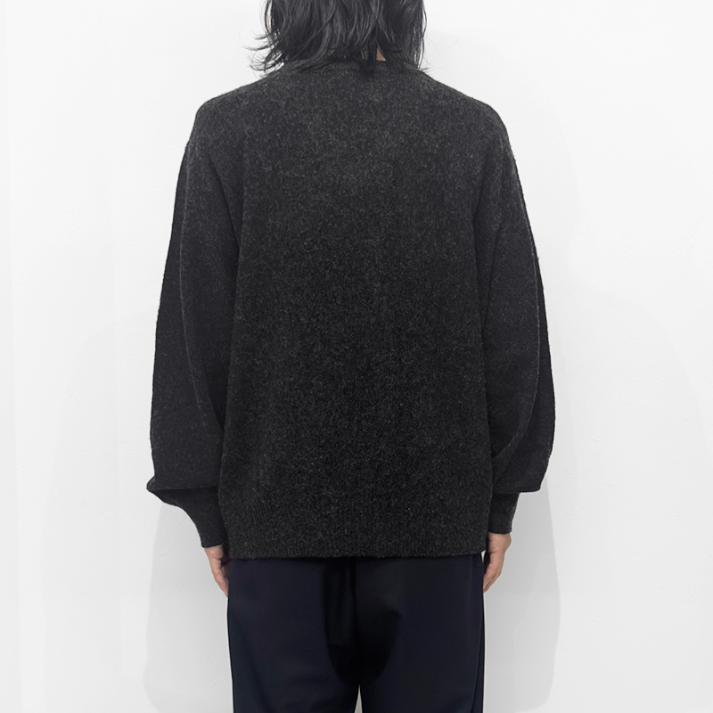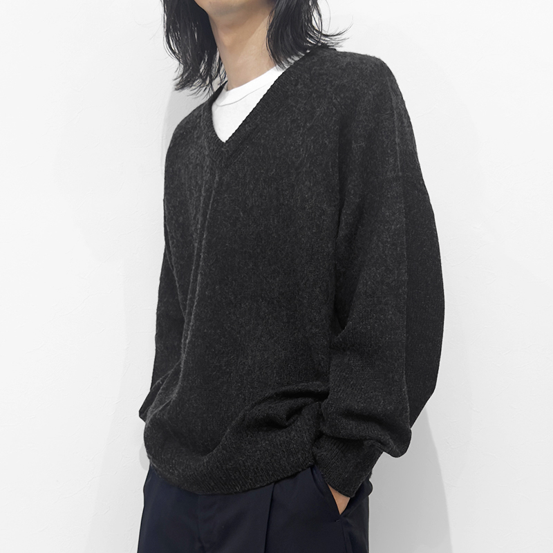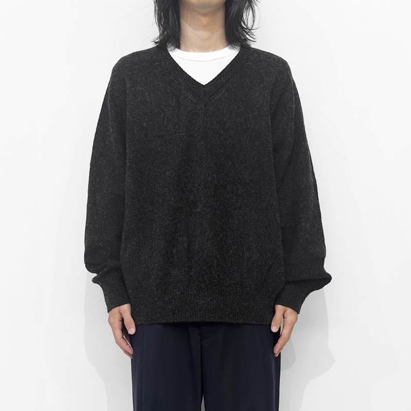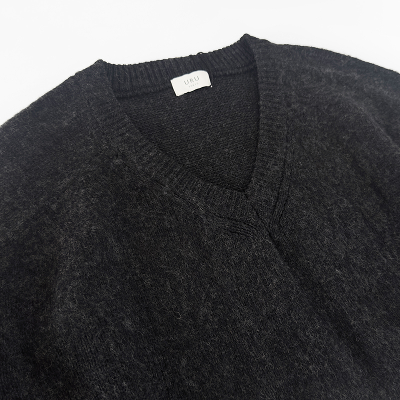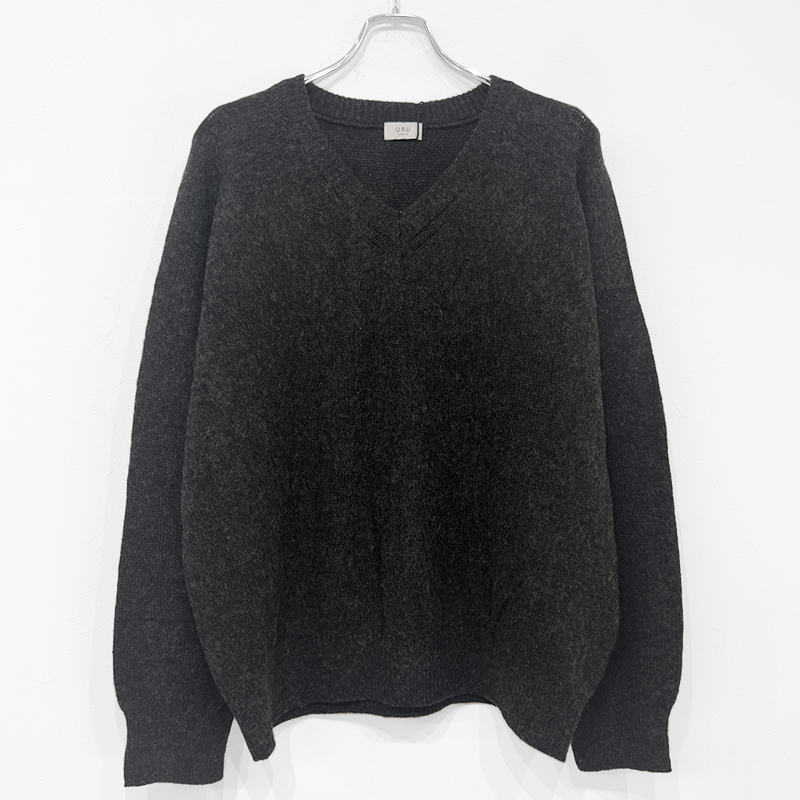 URU(ウル)のV NECK KNIT(25FUK07)です。軽やかな着心地が魅力のVネックニットです。空気を多く含んだ糸を使用することで、ソフトで軽やかな質感の中に、ほどよいボリューム感を持たせています。保温性にも優れ、チクつきを抑えた快適な肌触りに仕上がっています。