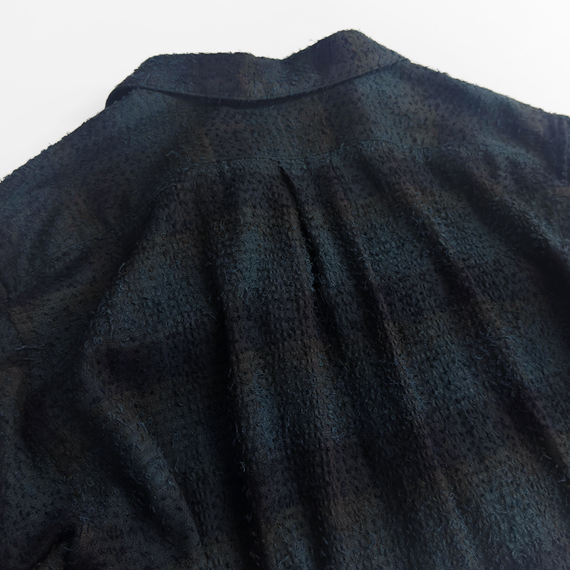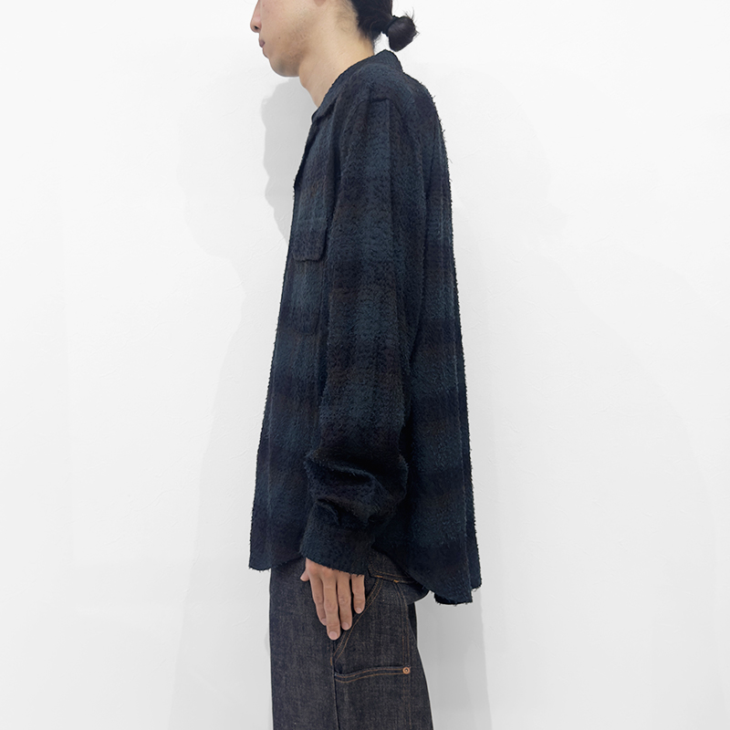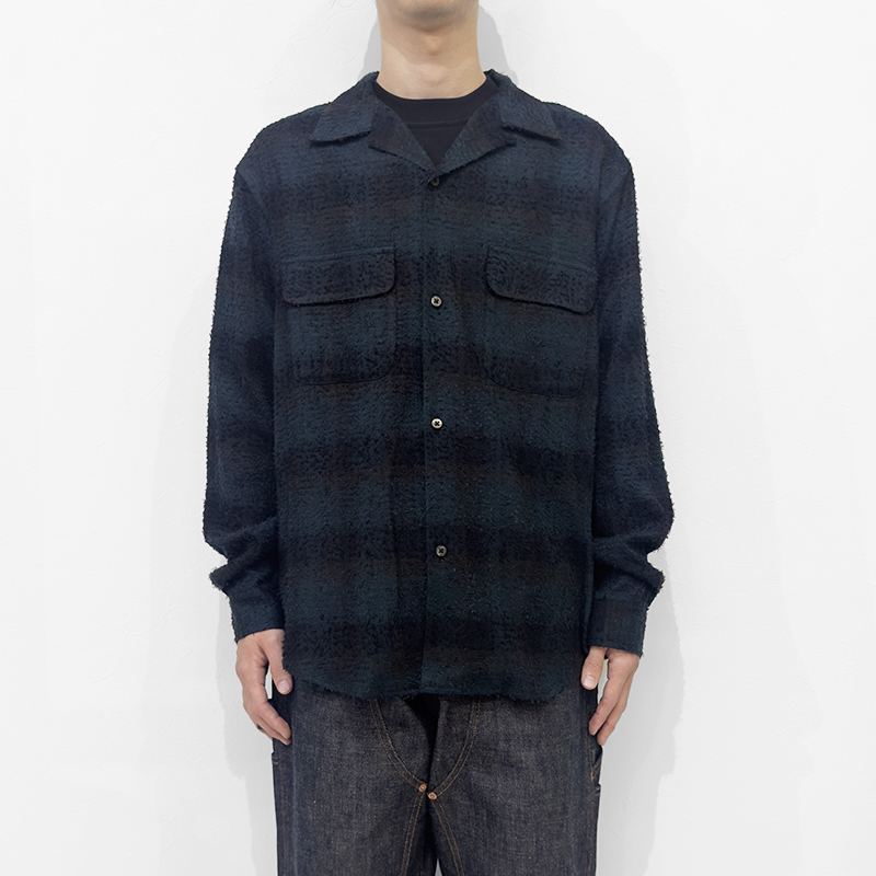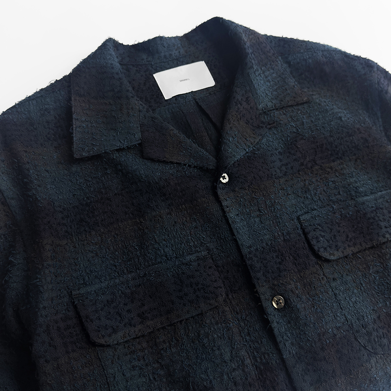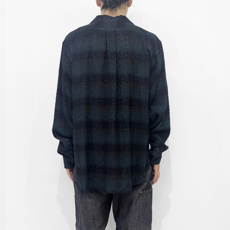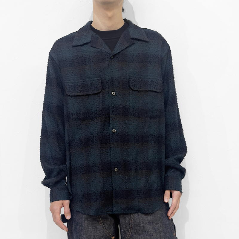 SUGARHILL(シュガーヒル)のHAIRLY PLAID OPEN COLLOR SHIRTS(25330502)です。オリジナルのチェック生地を使用したオープンカラーシャツです。ニードル加工によって立体的で凹凸のある表情を加え、存在感のある仕上がりに。無骨な風合いの中にも、レーヨンならではの落ち感ととろみが上質な印象を与える一着です。