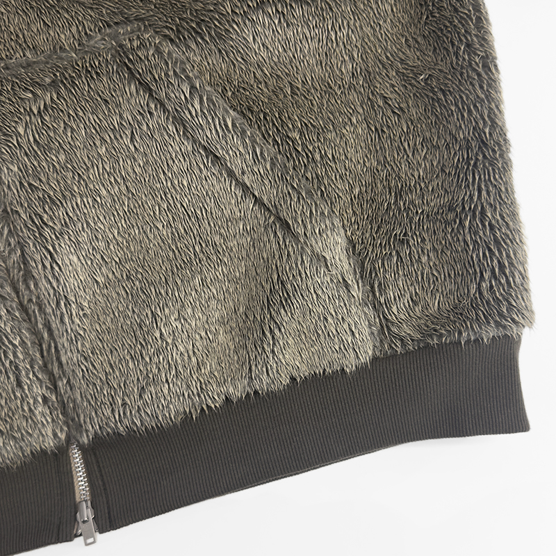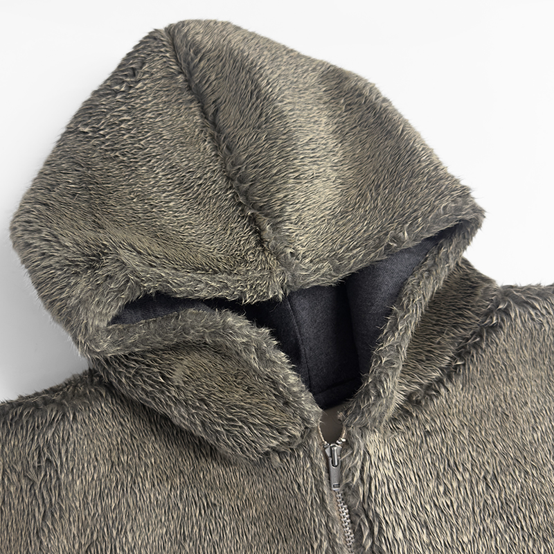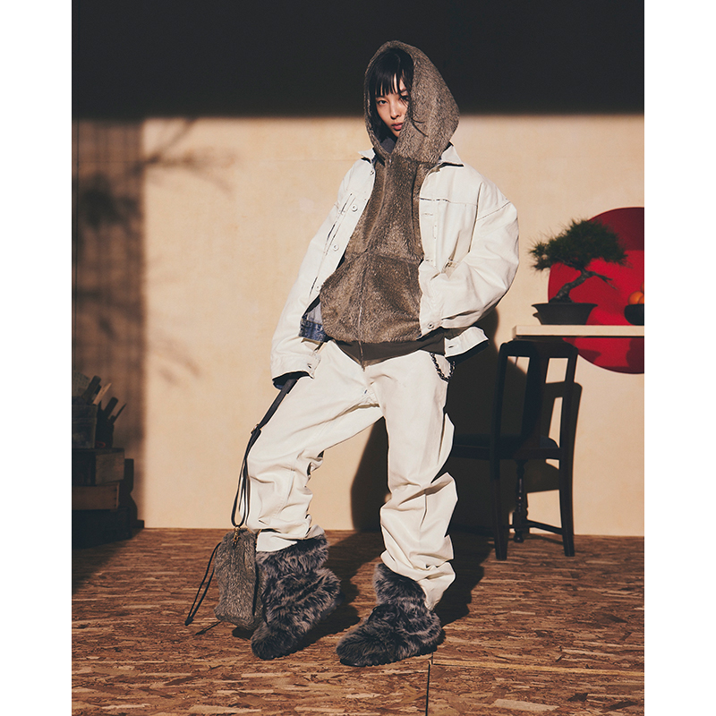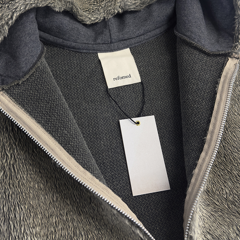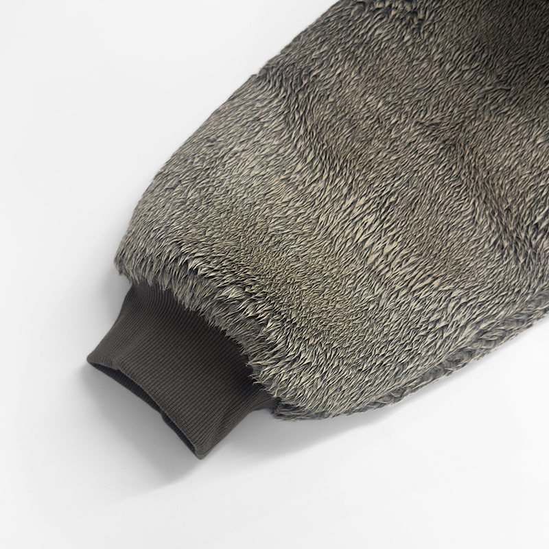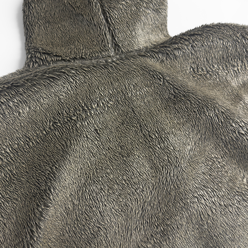 refomed(リフォメッド)のCASTRO BOA HOODIE(RECU-053)です。作業現場で用いられる防寒着から着想を得たボアパーカーです。「カストロ(ビーバー)」という名前には、“働き者”という意味が込められており、真冬に現場で働く職人をイメージしています。素材には毛足のあるボアを使用し、毛先に顔料加工を施すことで、独特のムラ感と深みのある表情を演出。質感のコントラストが際立つ、存在感のある仕上がりです。着用を重ねることで表面の糊が落ち、経年による風合いの変化も楽しめます。