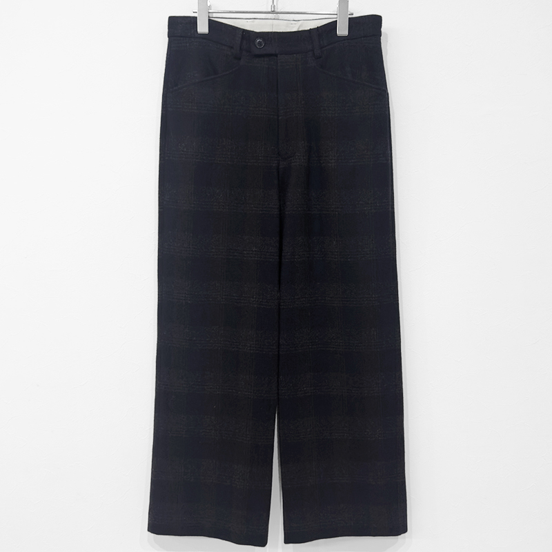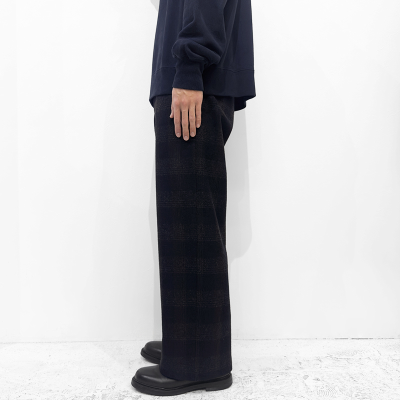 URU [ WOOL GLENCHECK WIDE PANTS ] D.NAVY