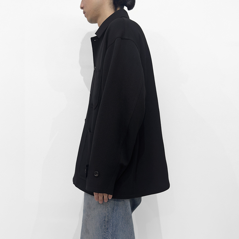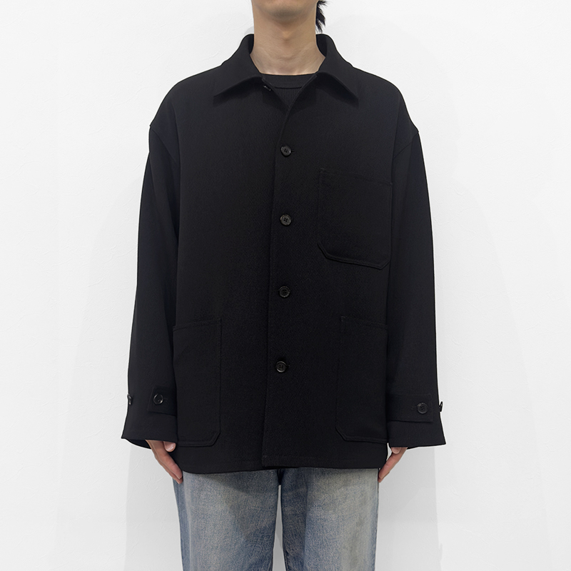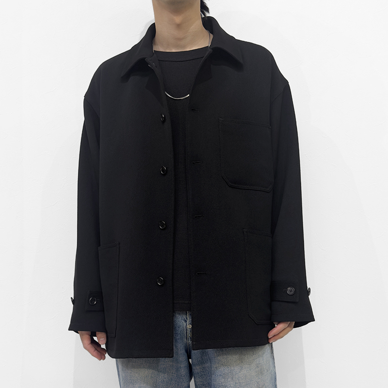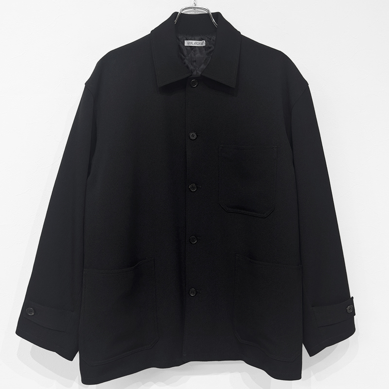 VAINL ARCHIVE(ヴァイナルアーカイブ)のPatrick(VAS25F001)です。中綿入りのカバーオールジャケットです。表地には、ふくらみと落ち感のあるドビー組織のキャバリーツイルを採用。ほどよい厚みがありながら、ジャージのような柔らかさと伸びのあるタッチが特徴です。裏地には滑らかなキュプラを用いることで、袖通しが良くストレスのない着心地に。フロントや袖口の水牛ボタンが上品なアクセントとなり、ワークウェアの無骨さに落ち着いた雰囲気を添えています。